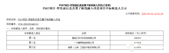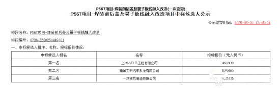 一汽两大焊装线项目中标结果变更 一企业被取消中标资格让人意外!